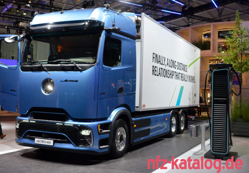Mercedes-Benz eActros 600 — 6×2-chassi — med elektrisk kylkaross från Kiesling. Mercedes-Benz eActros 600 — 6×2 chassis — with Kiesling…